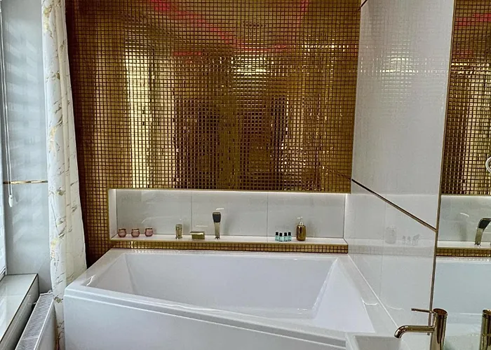 Apartament "Gold Luxury Dubai" Centrum Z Duza Wanna Dla Dwojga Gniezno is located merely 250 metres from Pomnik Opatrznosci Bozej and looks out onto the city. Wi-Fi and parking are provided for guests' utmost comfort.